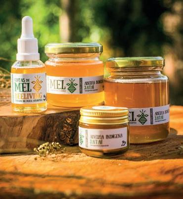AS ABELHAS SÃO GUARDIÃS DA BIODIVERSIDADE do mundo. De flor em flor, por meio da polinização, elas preservam a natureza e a vida. No Brasil, há cerca de 300 espécies de abelhas nativas sem ferrão, que produzem méis com características únicas de sabor, textura, aroma e cor – muito diferentes daqueles comerciais que encontramos nas prateleiras dos mercados, elaborados por abelhas de origem europeia. Assim como vinhos e cafés especiais, a qualidade dos méis produzidos por espécies nativas – como jataí, uruçuamarela, mandaçaia, tiúba, manduri, emerina, jandaíra –depende do terroir, o que valoriza sua origem, complexidade e autenticidade. “O sabor, o aroma e a textura de cada mel são moldados por muitos encontros: a espécie da abelha, com seus hábitos e formas de armazenar o néctar; as flores disponíveis naquele território e naquela estação; as condições do bioma (solo, altitude, umidade, vento); o tempo de maturação dentro do ninho e, principalmente, as mãos que colhem. Cada abelha imprime no mel a sua arte, mas quem cuida da colheita também deixa sua assinatura”, explica Diulha Dillmann,