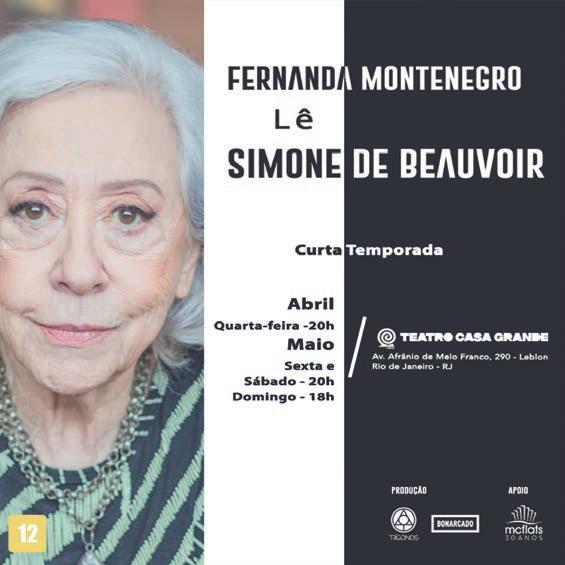 Trata-se de uma obra poderosa, cuja temática é uma visão libertária sobre o feminismo. E, de forma comovente, aborda também sua ligação de vida junto ao filósofo JeanPaul Sartre (1905-1980), de quem foi companheira. A dramaturgia, a direção e a seleção musical da apresentação são assinadas pela própria Fernanda Montenegro.