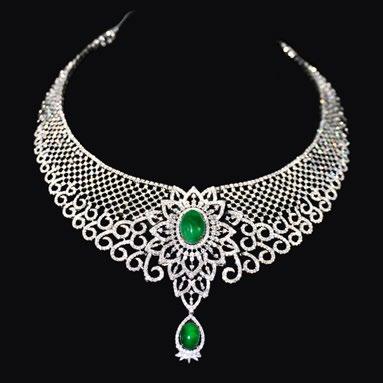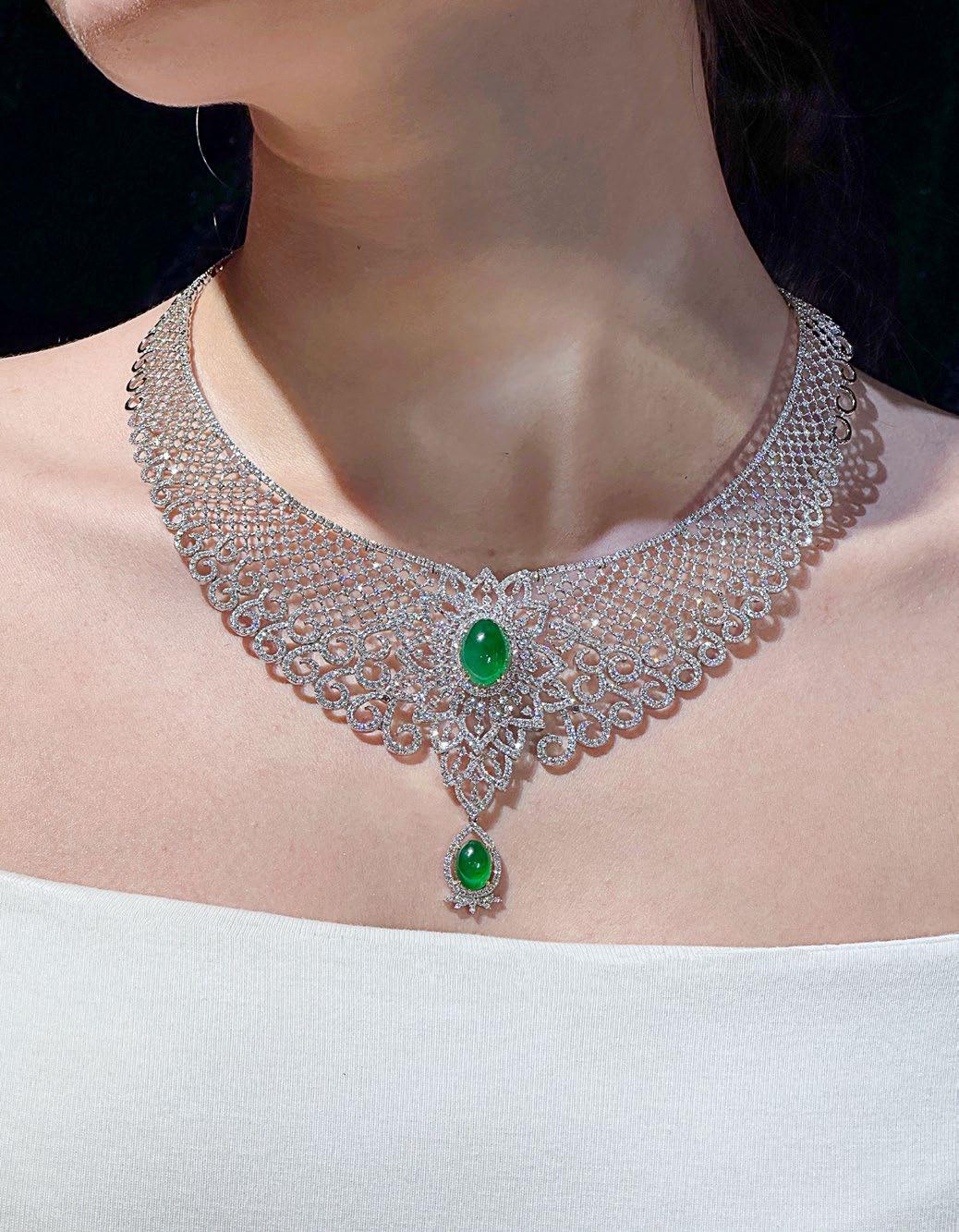 Lot 122 Cabochon Jadeite and Diamond Lace Necklace
