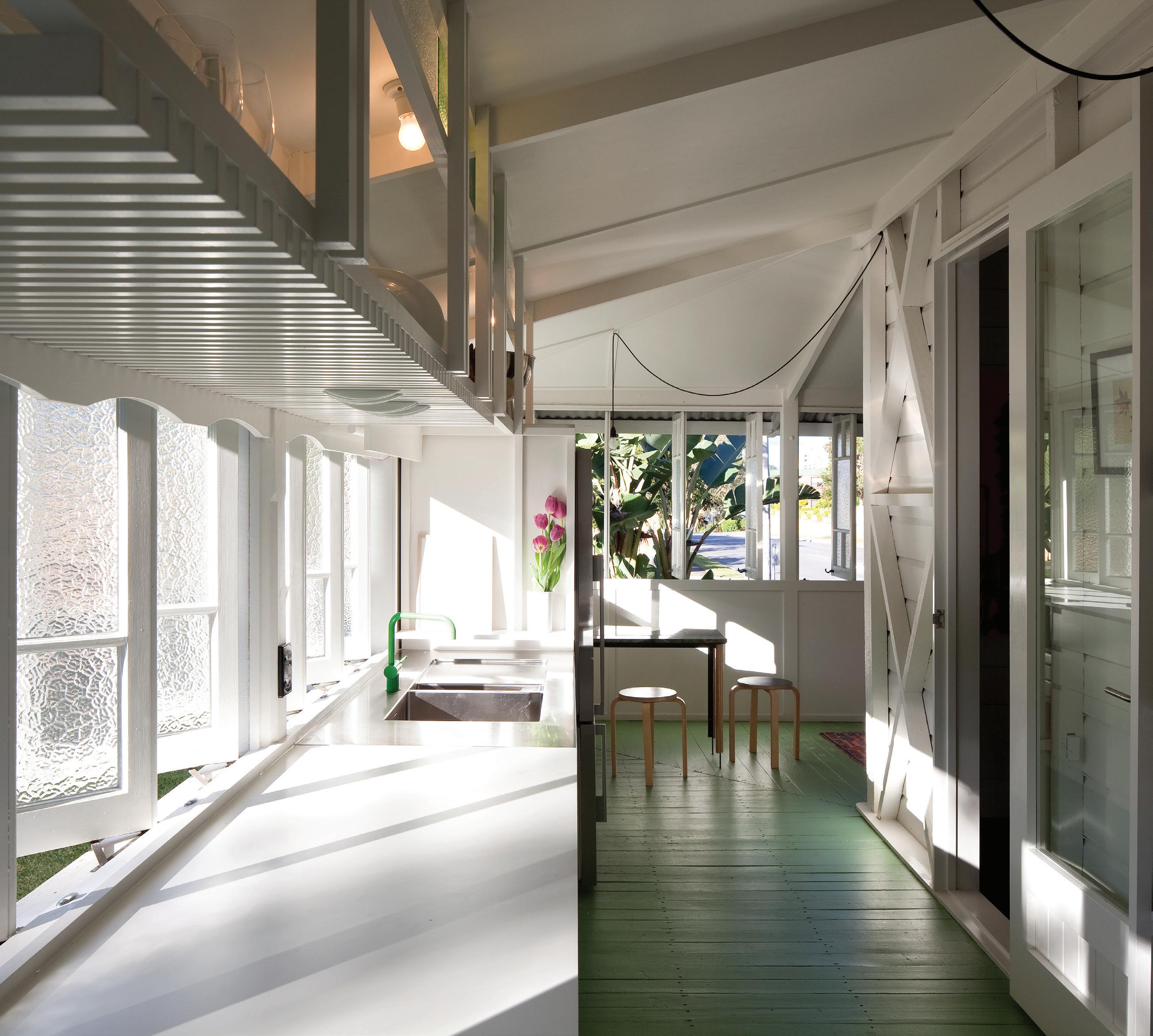 As varandas fechadas eram outrora comuns em Brisbane. Estes espaços, coloquialmente conhecidos como ‘sleepouts’, eram considerados uma forma barata e prática de criar mais espaço interno para as famílias. Os ‘sleepouts’ das varandas fechadas em West End Tower representavam 50% da área original da casa. Em vez de reinstalar as varandas na sua forma exterior original, o ‘sleepout’ lateral foi convertido numa nova cozinha e sala de pequeno-almoço com vista para a rua.