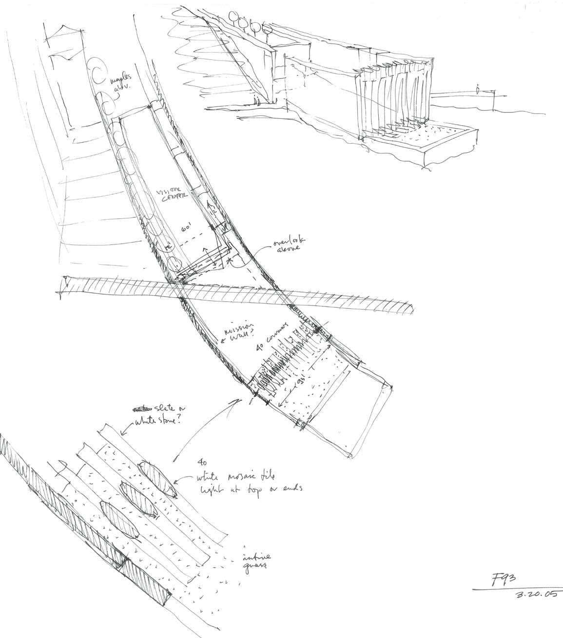 The design was selected among 1,100 entries through a two-stage, international design competition in 2005. In the first stage, Paul Murdoch Architects presented a master plan with key memorial features, such as a tower with 40 wind chimes, a large curving landform with memorial trees framing a field of honor, long tall memorial walls that frame the flight path and enclose a visitor center, and a memorial plaza along the edge of the crash site, culminating in a ceremonial gate and wall of names. In the second stage, a team of consultants helped develop the design concept, including an association with Nelson Byrd Woltz Landscape Architects.