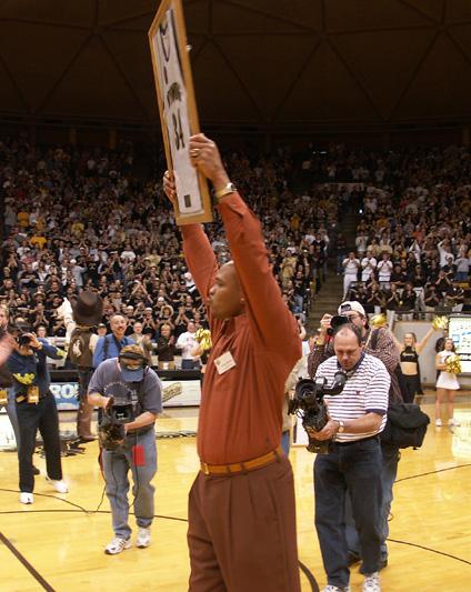 Josh Davis celebrates after Wyoming won the 2002 MW Regular-Season Championship.