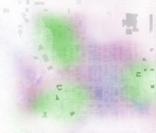 Eleven North End community members assisted in subjectively analyzing how walkable their neighborhood was by highlighting key sensorial cues. Through indepth interviews and a process of mapping out the Four S’s, commonalities became clear. In the North End, the community members suggested selecting a node in the middle of the neighborhood that included popular restaurant Parks BBQ, as well as Bennett park, and the Michigan Urban Farming Initiative. This node was then analyzed for its existing sensorial assets for around two and a half months. The node was then divided into three zones based on the analysis.