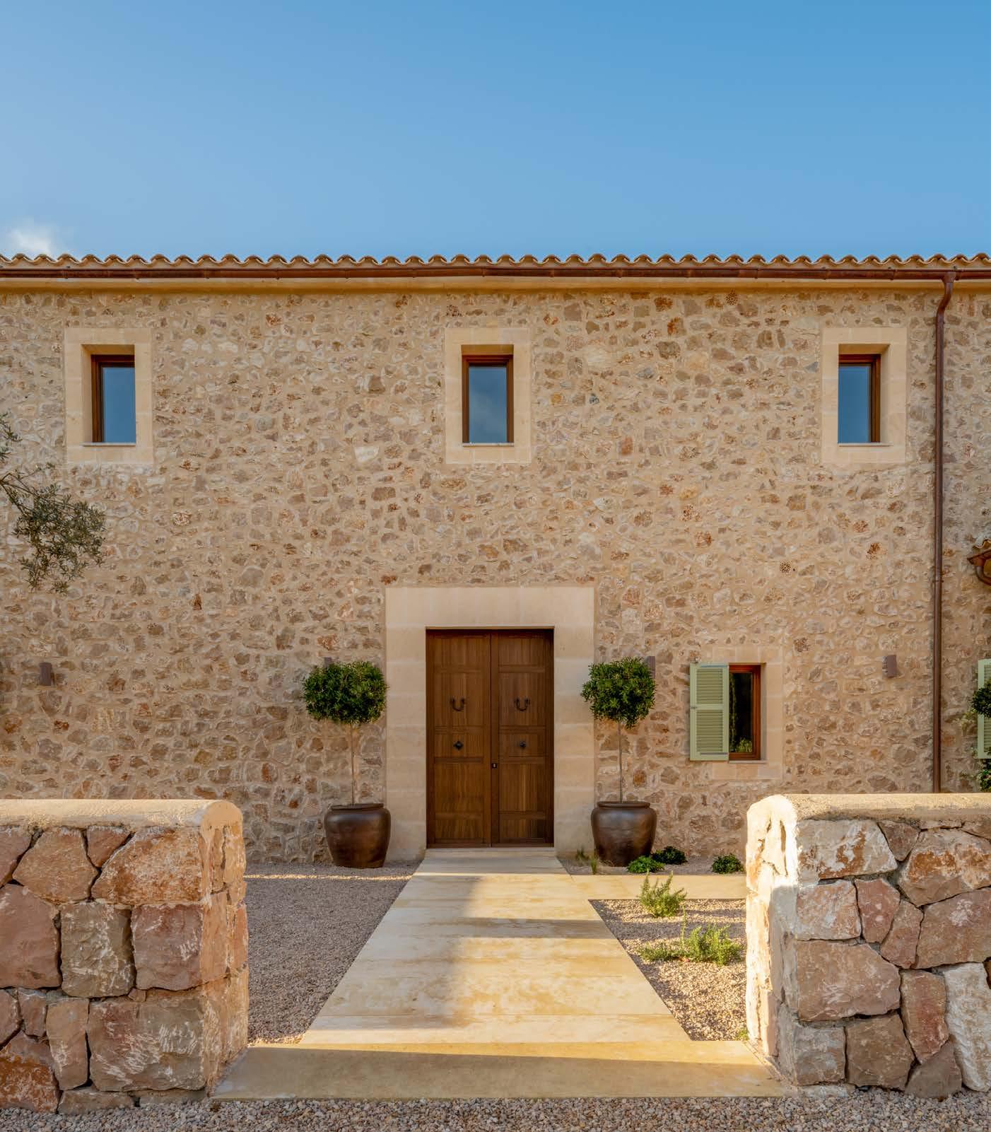 Vom privaten Studio im obersten Stockwerk mit Blick auf die Berge über die Holzbalken, Türen und Fenster bis hin zu den reizvollen Originalfliesenböden - „die größte Herausforderung“ - wurde alles mit großer Sorgfalt und Liebe zum Detail ausgeführt. Selbst die ovale Form des ganzjährig beheizten Salzwasserpools ist eine Anspielung auf die Haupttür des Anwesens mit ihrem ursprünglichen weinroten Glas. Wenn alles fertig und auf Hochglanz poliert ist, hat es etwas Befriedigendes, kunstvolle Details mit dem ultimativen sonnigen Leben auf Mallorca zu verbinden.