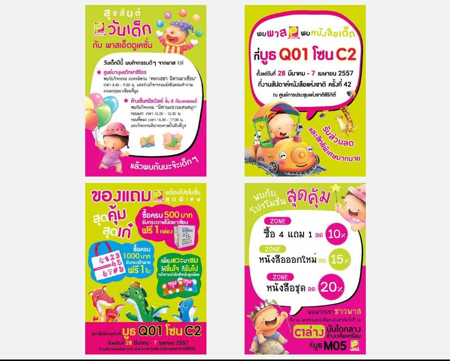 14 เป็นงานจัดอบรมผู้ปกครอง เพื่อประชาสัมพันธ์หนังสือติวลูกเตรียมสอบ เป็นการจัดกิจกรรมเพื่อส่งเสริมการขายหนังสือ และเปิดตัวตัวละครใหม่ชื่อป๋องแป๋ง ร่วมออกแบบและจัดกิจกรรมงาน “บีทูเอส เตรียมแม่ติวลูกสอบสาธิต กับพาสเอ็ดดูเคชั่น” ครั้งที่ 1 และ 2 ร่วมออกแบบและจัดกิจกรรมงาน “ป๋องแป๋ง GO” ในงานมหกรรมหนังสือระดับชาติ ครั้งที่ 21