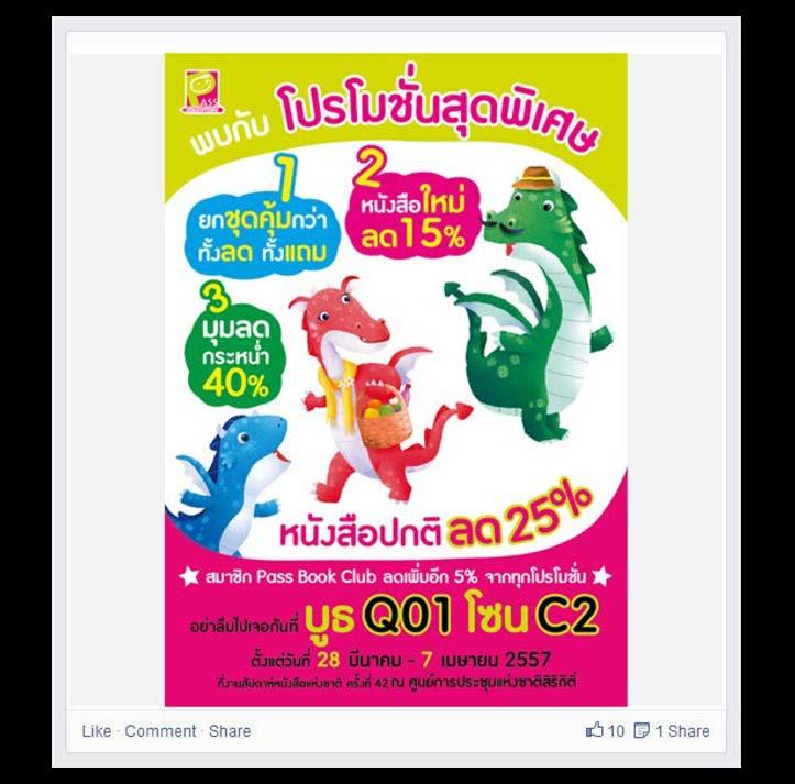 ร่วมออกแบบและจัดกิจกรรม “แชะ&แชร์” ในเทศกาลครอบครัวนักอ่าน ครั้งที่ 2 เป็นกิจกรรมส่งเสริมการขาย เพื่อกระตุ้นยอดขายโดยการแชร์รูปลงในสื่อโซเชียล เพื่อแลกรับส่วนลด และทางร้านได้รับการประชาสัมพันธ์