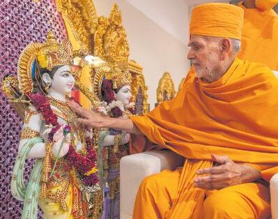 HH Mahant Swami Maharaj performing the murti-pratishtha rituals