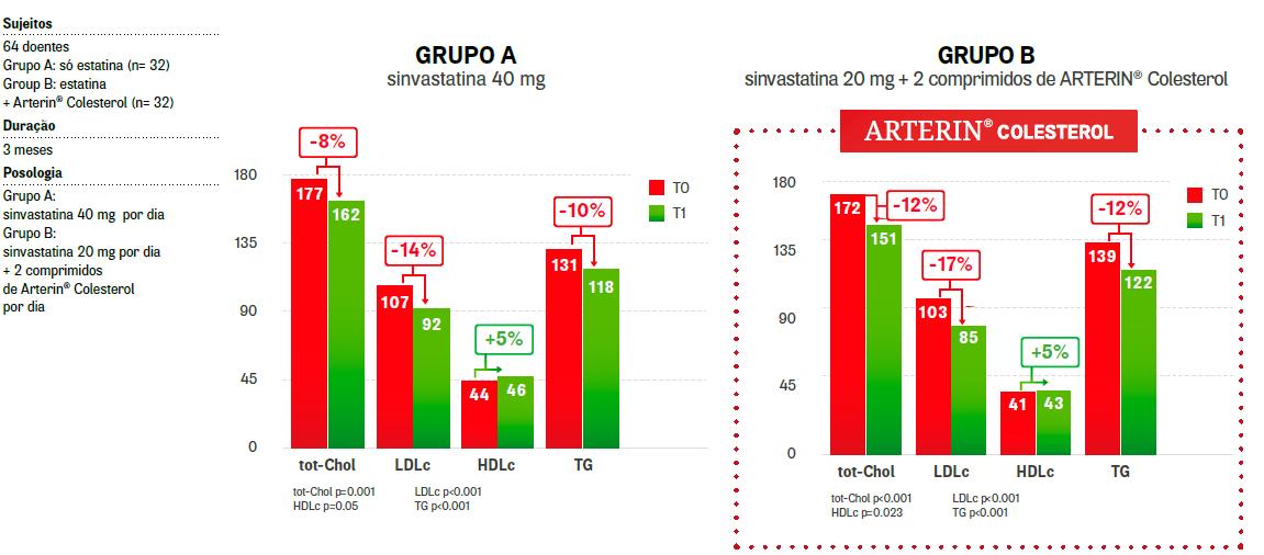 ESTUDO 2. A combinação do nutracêutico e sinvastatina aumenta o efeito da sinvastatina isolada na normalização do perfil lipídico sem efeitos secundários em doentes com doença isquémica cardíaca.