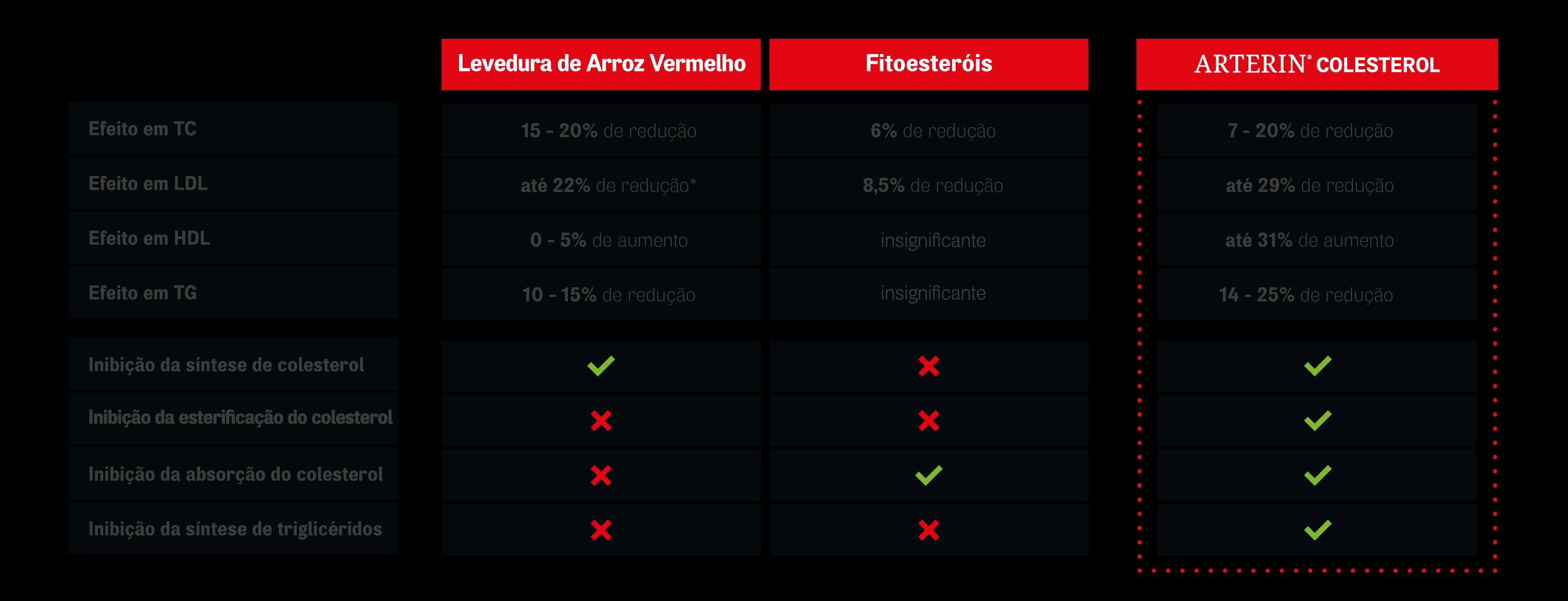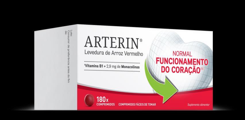 O efeito benéfico na redução do colesterol é obtido com a dose diária de 1,5 g a 3 g de esteróis vegetais. ARTERIN® 2,9MG Levedura de Arroz Vermelho: A tiamina (Vitamina B1) contribui para o normal funcionamento do coração Arterin®