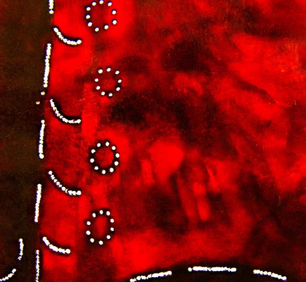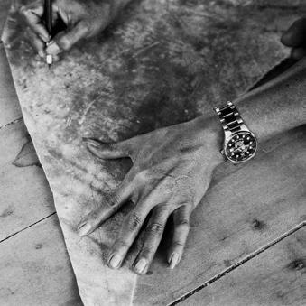 Above & below left: You first draw on paper, next on leather, and then you carve and colour it.