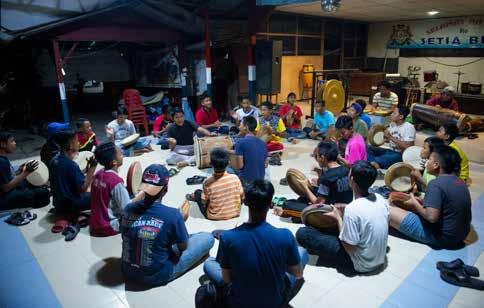 Wayang kulit is about community. A music class conducted by Pak Miskon’s musicians, teaching the locals the sounds of the wayang. Johor Bharu 2016.