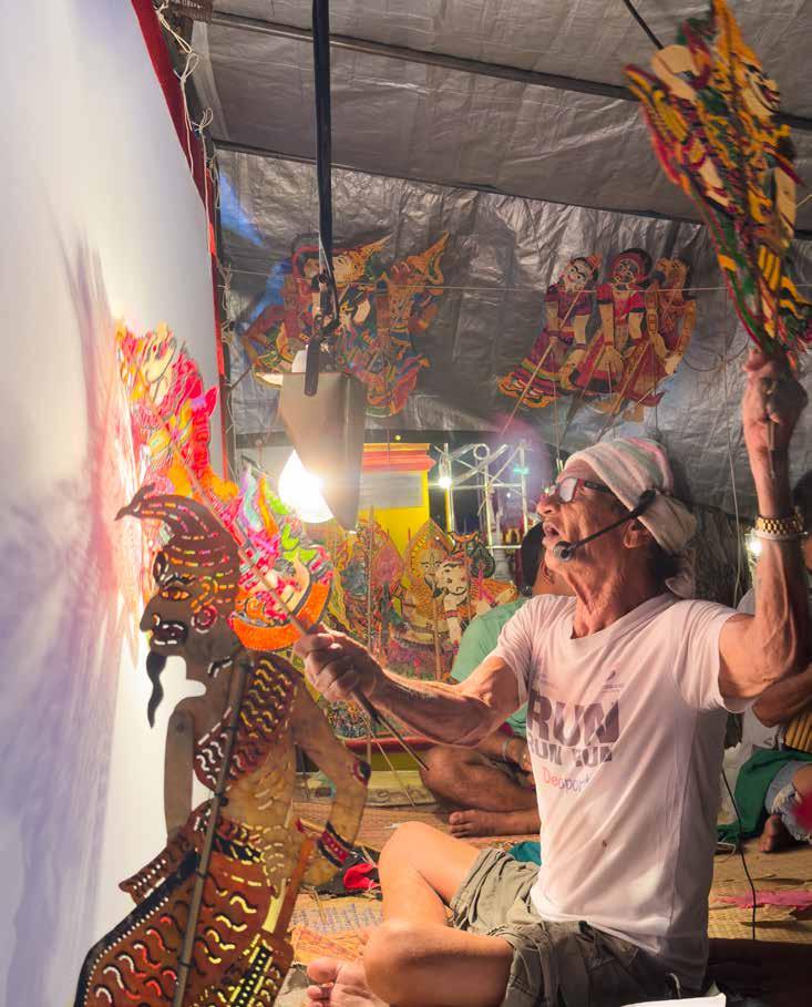 Opposite page: Nang talung performance by Siri, as part of the Harmony World puppet festival in Phetchaburi, 2024.