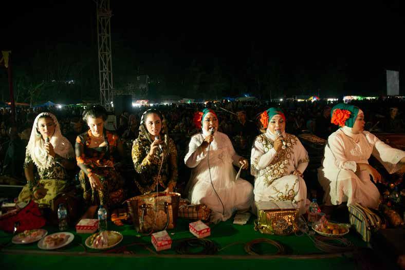 Sinden are the female singers in a shadow theatre performance in Java. Wayang kulit performance, Ki Enthus Susmono, Tegal, 2016.