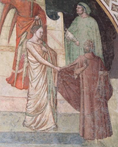 Leaving aside the tight unity of the cycle, whose dating is limited by the seal with multiple references to Fidesmino da Varano’s tenure as podestà, we have seen ample evidence that the figurative context of the frescos dates from the middle of the fourth decade of the 14th century, and certainly not from fifteen years earlier. Faced with so much evidence, I cannot see how it is possible to consider an argument for dating to 1322 the interpretation of the dedication to the Magdalene celebrated in the narrative cycle as a tribute to the royal house of Naples. The interpretation itself is not entirely unfounded; the miracle of the resurrection of the King of Provence’s son (figs. 4, 6) is widely depicted, e.g. in the Magdalene Chapel in Assisi (c. 1307), another place in the long shadow of the Angevin crown. The tribute to the House of Anjou was a