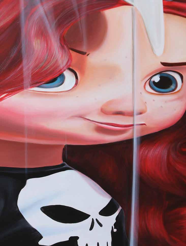 ‘A race between toy cars is actually a battle fought by the world’s leaders for global domination. A bottle of pills crammed with colourful sweets shows that addiction to prescribed meds can cause more damage than the pills can cure.’