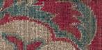Silk and metal-wrapped silk thread; draw-loom-woven, with a 1/3 twill double-weave structure in the end, sides and cross borders and a second, di erent woven structure, a 1/3 warp faced and 3/1 weft-face damask, with brocading, in the central eld. Missing one end