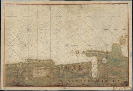 south-east. Violent battles against the native Tairona populations were also organized from Santa Marta for more than a century. The foundation of Cartagena and the concentration of slave traffic from Africa and the native populations in the new city led to the slow decline of Santa Marta, as also highlighted by the inventory note in French. The Carta di Castello, with its very generic key compared to those of the territories and cities under the jurisdiction of the Dutch West India Company, nevertheless reveals the company’s interest in the western territories governed by its rival the Spanish Empire.