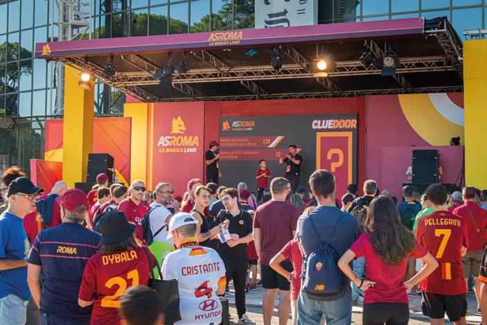 Si chiama ‘La Magica Land’ ed è uno spazio innovativo e multisen soriale dedicato a tutti i tifosi dell’AS Roma, attivo prima di ogni partita casalinga dei giallorossi all’interno del Parco del Foro Italico Il progetto, aggiudicato ad Alphaomega tramite gara, propone una nuova interpretazione contemporanea e business oriented del concet to di fan village. Non un parco di divertimento, ma un vero e proprio asset strategico nel piano di marketing della società per aumentare il valore del brand, potenziare la relazione della fan community e per offrire a sponsor e partner della società un touchpoint con target selezionato di consumatori. Il format, il set-up degli allestimenti, le attivazioni, i contenuti di engagement e di interazione con il pub blico: tutto all’interno de ‘La Magica Land’ è concepito con l’obiettivo di aumentare il valore percepito della matchday experience. Nella stagione passata, ‘La Magica Land’ ha regalato oltre 6.500 experience individuali per una permanenza media di oltre 5 minuti con circa 4.000 nuove registrazioni alla digital community della società.