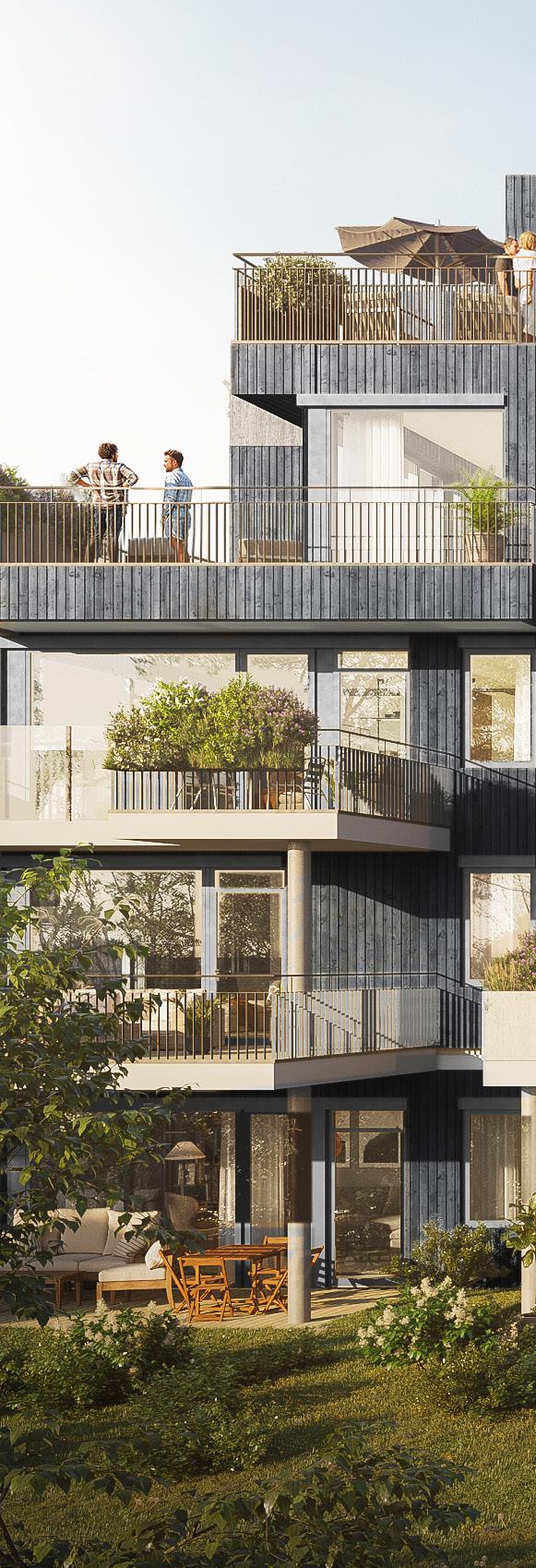 Store, flotte balkonger med plantekasser og gode solforhold. Alle leilighetene ligger på hjørner, noe som gir flott lys fra flere sider.