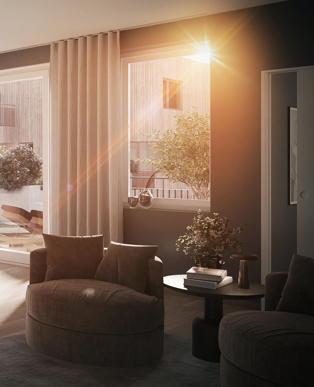 Alle leilighetene har hjørneplassering, noe som gir et nydelig lys fra to himmelretninger.