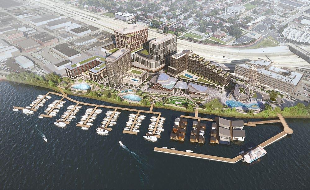 The objective of the project is to create a transit-oriented development with a focus on connections to the river for residents and the public. View corridors and terracing buildings draw people through the project and down to the river to enjoy several water-oriented amenities such as a Crystal Lagoon urban beach, a full marina, a performance pier, the Three Rivers Heritage Trail and a Ferris wheel perched over the river with dramatic views to The Point. Sustainability is an important issue to this development and many green strategies are incorporated into the design, such as bio-filtration water features, storm water reuse, parks and open spaces, green roofs and daylighting. This development will be a “first-day” visitor attraction with all-encompassing amenities unmatched in the region.