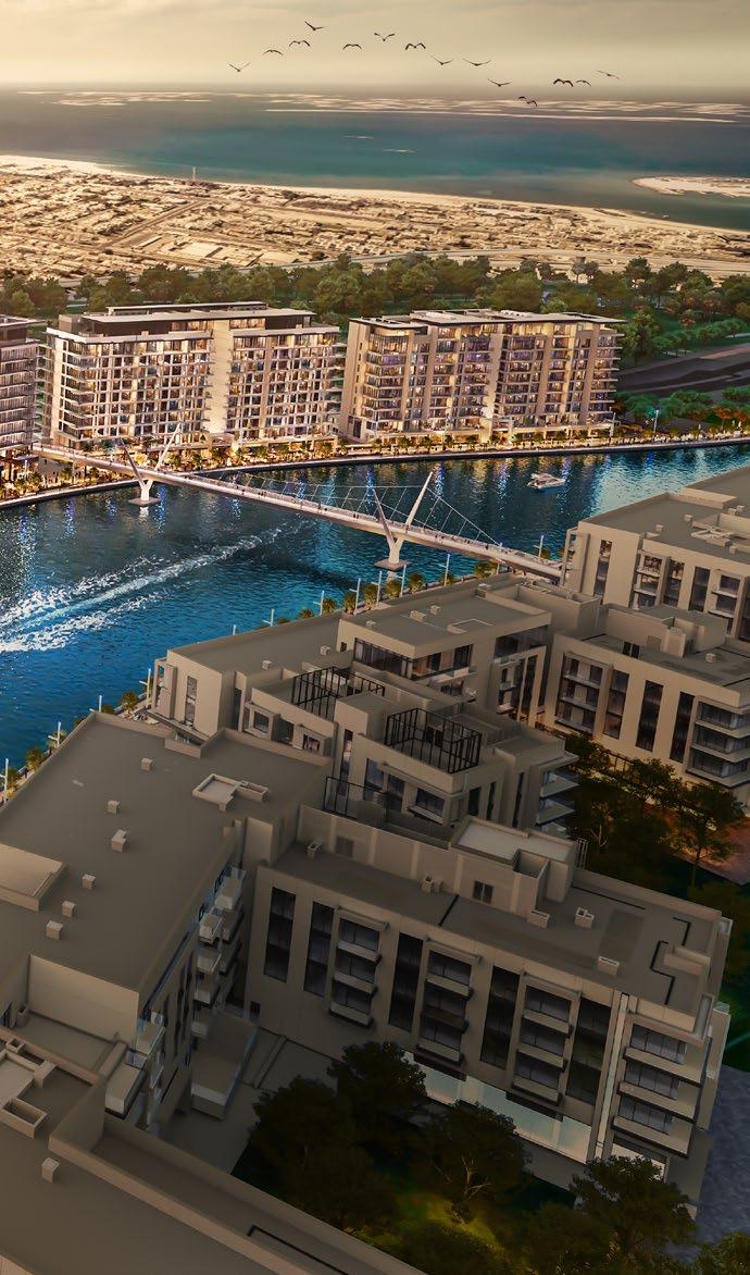 The vision of the development is to provide a ‘home away from home’ for the Emiratis and expatriates of the Emirate of Dubai and other Emirates. A home at a waterfront community with canals and waterways connected to the Arabian Gulf and with private berthing and mooring of boats or private beaches at the water facing units. The development is 1.8 million square meter with 600 single family residences and 13,000 apartments with 2 luxury hotels and 3 marinas.