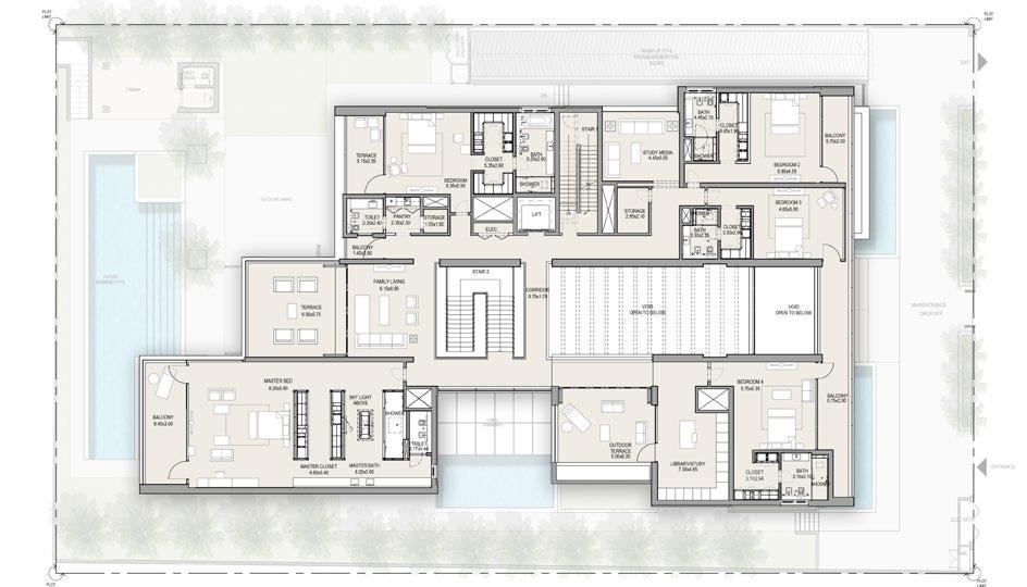 The three-story Arabic style mansion is based on the concept and layout of a traditional Arabic courtyard home. The villa aims to retain traditional Arabic elements incorporated throughout the mansion. The foundation structure is based upon a nine-square grid, where residents and visitors will be greeted by a spacious Majlis in the entrance. Two guest rooms are positioned on the ground floor, and both include their own personal living quarters and pantries.