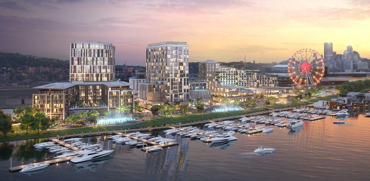This mixed-use project is situated on the Ohio River north of Pittsburgh’s West End Bridge and west of the historic Manchester neighborhood in the city’s North Side. The development includes residential units, retail and restaurants, a boutique cinema experience, a performance theatre and an office tower all oriented around a thirty-one story, five-star luxury hotel tower.