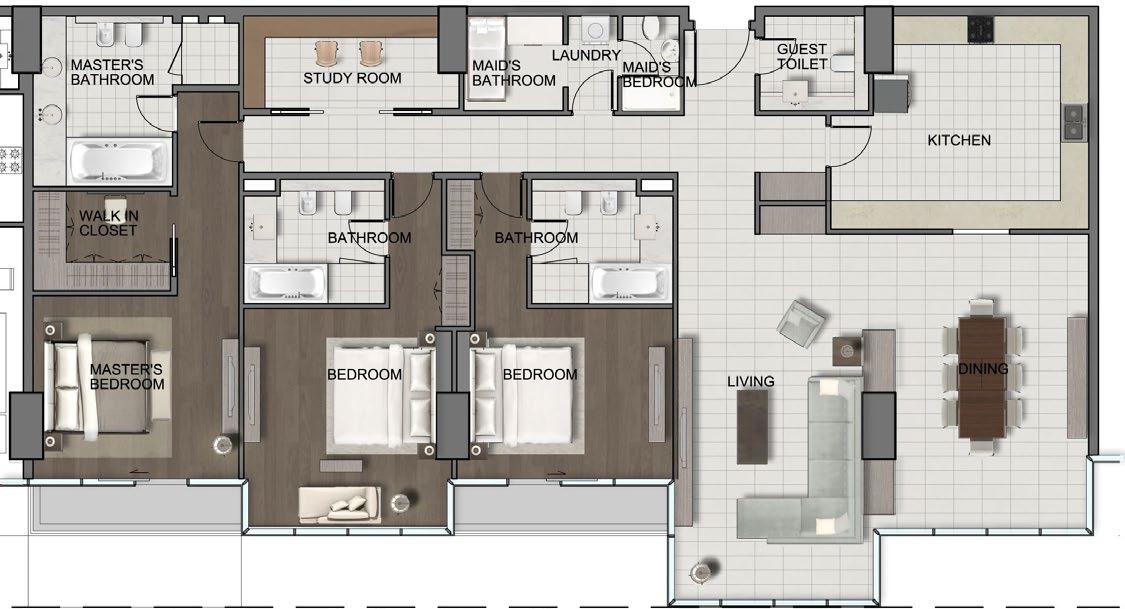 The development will also host a unique marina for the boating enthusiasts with a shading system over it to control and moderate the climate within the marina which will provide a more pleasant experience all year round.