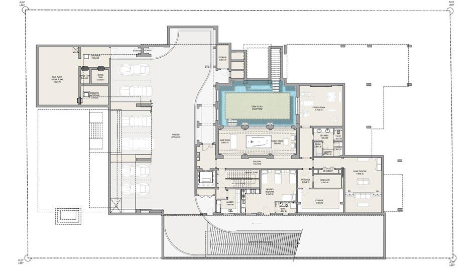 Following traditional Arabic values, the upper levels are remarkably private, containing the main bedrooms, each with an en suite bathroom, and the more private living areas. The square-grid style of the home allows all the upper level sections to overlook the central Majlis, located on the ground floor. The basement level provides underground parking and includes a gym, a spa and a private home theater. Pantries are included on all three levels, making the home as convenient as it is sophisticated. Every design detail supports the home’s ultimate offering: an exceptional lifestyle.