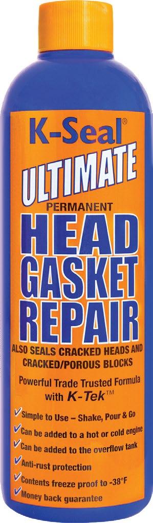 K-Seal is a one-step permanent multi-purpose system for coolant leak repair with more than 9 million bottles sold worldwide to date. It permanently repairs leaks in the head gasket, block, radiator, heater core, freeze plug and water-pump casing.