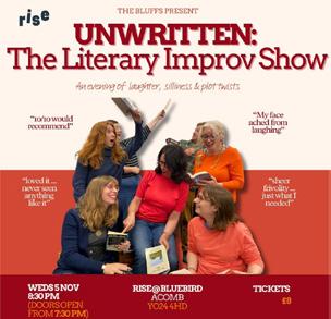 Improv based on your literary suggestions. The Blufs take classic short-form improv games and infuse them with storytelling fair. Every show is completely unique, shaped by audience participation and spontaneous creativity. Who knows where this evening will take us.