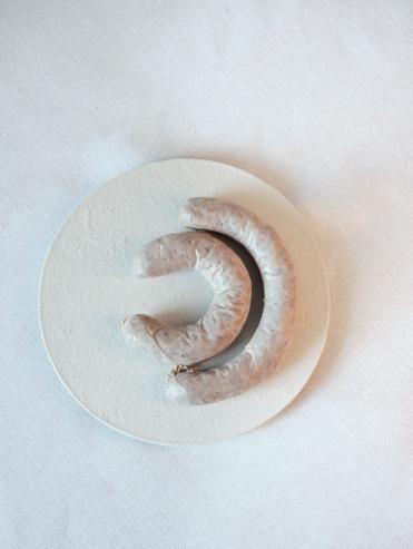 Die Frage ist halt, ob er da bereits die Rigatoni „Cacio e Pepe“ gekostet hatte, denen Camanini wirklich alle Schikanen der Grande Cuisine angedeihen lässt. Die ungekochte Pasta wird dafür mit Pecorino, gemörsertem Pfeffer, Olivenöl und Wasser in eine Schweinsblase gefüllt, hermetisch verschlossen und im Wasserbad für 25 bis 30 Minuten gegart. Die Technik wurde einst vom großen Fernand Point in Vienne für Poularde demi-deuil entwickelt, ein mit Foie gras und schwarzen Trüffeln gefülltes und in der Schweinsblase gedämpftes Bresse-Huhn. Camanini widmet diesen höchsten Grad kulinarischer Aufmerksamkeit einem quintessenziellen Arme-LeuteGericht.