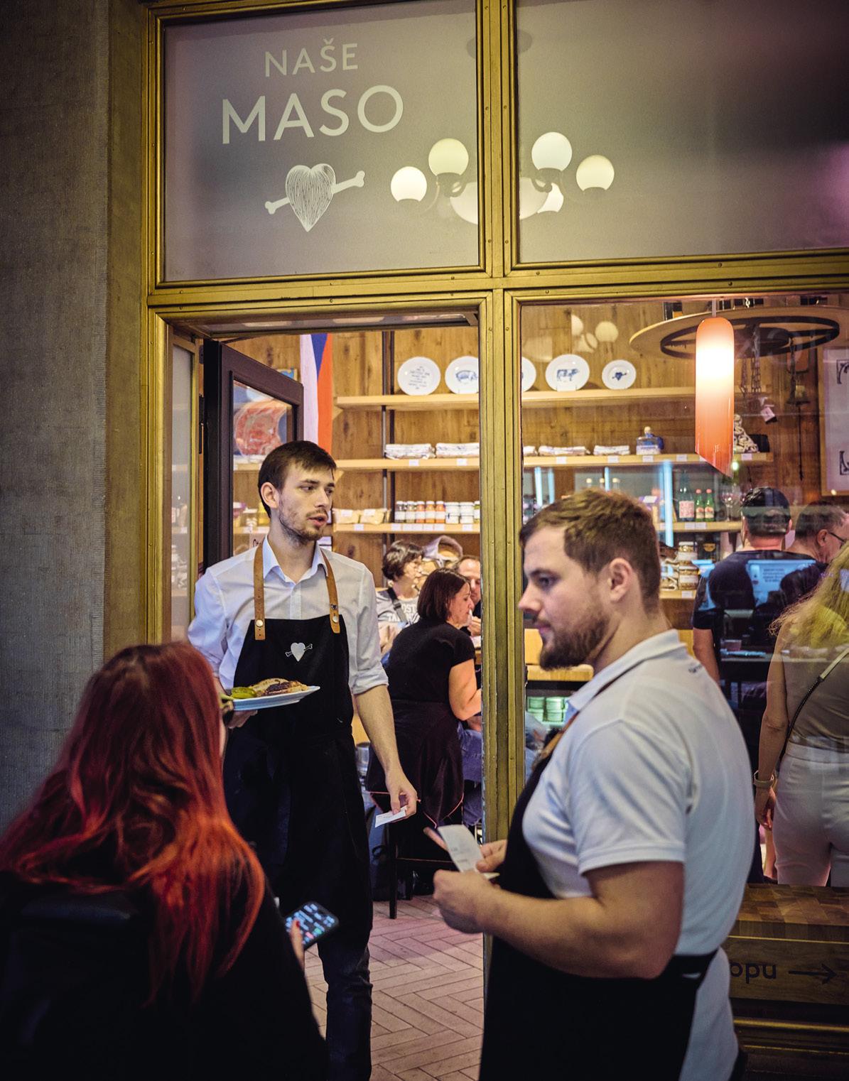 Das mit dem „Nose to tail“ nehmen sie im „Naše maso“ sehr ernst. Der umfangreichen Fleischhauerei ist ein wunderbarer Imbiss vorgelagert – Tartare und Faschiertes to go. (Bild gegenüber)