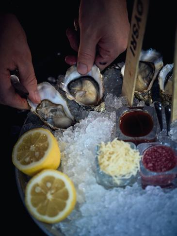 auf den sozialen Medien schreiben. Da ernsthaft Gefahr besteht, dass der Eiweißpegel schon bald wieder fällt, geht es in ein kleines Fisch-Restaurant-Kaufhaus, in dem nach Pop-up-Prinzip Meeresgetier, darunter frische Austern, serviert wird.