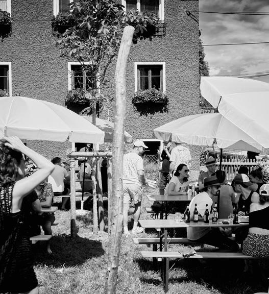 12–13 Bisweilen geht’s an Wochenenden schon am Vormittag los, wenn Philip befreundete Köchinnen und Köche einlädt, die etwa auf der Wiese Hendln braten, ehe in weiterer Folge oft bis weit in die Nacht gefeiert wird.