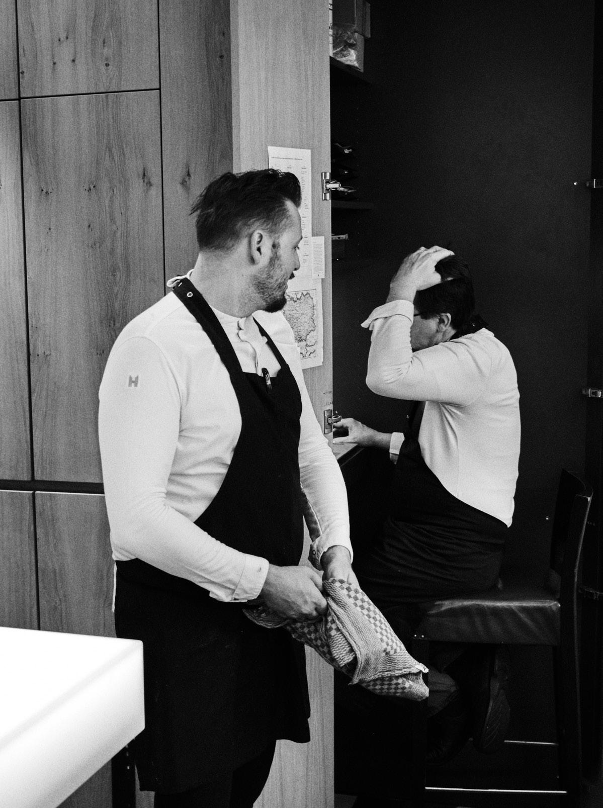 Auch die Rollenverteilung ist klar definiert. „Rudi ist der verantwortliche Küchenchef, er ist ein Besessener, er ist ein Tüftler, er zählt zu den ganz Großen, er ist ein Kochgenie. Und ich bin sein Beikoch, der sich am Vormittag auch um Dinge wie die Buchhaltung kümmert.“ Jetzt schenkt Rudi noch einmal nach und bringt, weil der wichtig ist für die Geschichte und den Werdegang der Salzburger Brüder,