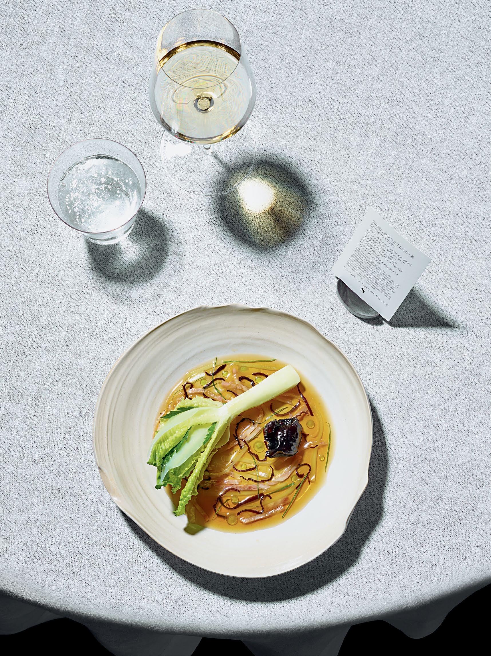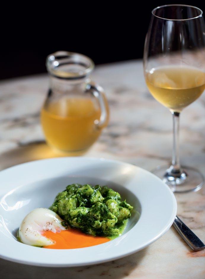 Ungleich handfester, aber nicht minder virtuos geht es Leopoldo Garcia Calhau, ein Autodidakt, der (wie der große Fergus Henderson) eigentlich ausgebildeter Architekt ist, in seiner TABERNA DO CALHAU an. Das winzige Lokal ist mit Möbeln einer uralten Weinschenke aus dem Alentejo ausgestattet, auch die Produkte und Kochtraditionen hat Calhau sich in dieser aus bitterarmen, aber für die handwerkliche Qualität seiner Landwirtschaft legendären Region geholt. So sitzt man auf winzigen Holzschemeln und darf sich an Hirn mit Ei freuen – hier aber vom Lamm, im Ganzen in brauner Butter gebraten und erst bei Tisch mit cremig pochiertem Ei serviert –, an Wildspargel mit herrlich dichtem Püree von Pastinaken aus der Glut oder an rauchig auf den Punkt gegrillten Backerln vom schwarzen Eichelschwein, die Calhau in einer köstlich altmodischen (aber makellos abgeschmeckten) Sauce aus Wein und Brandy serviert. Zu aus der Vergangenheit geholten –aber nicht zuletzt der Nachhaltigkeit wegen hochaktuellen – Gerichten wie diesen trinkt man einige der besten Naturweine Portugals, zart im Alkohol, straff, von unwiderstehlichem Trinkfluss.