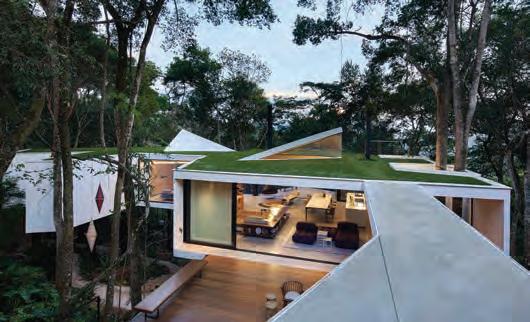 From the Architect Report: A place immersed in lush Atlantic Rainforest nature. A terrain filled with large leafy trees, foliage, shrubs, birds and wild animals. A challenging topography with a steep slope, characteristic of the Nova Lima region in Minas Gerais. This is the place where Casa Açucena is inserted.
