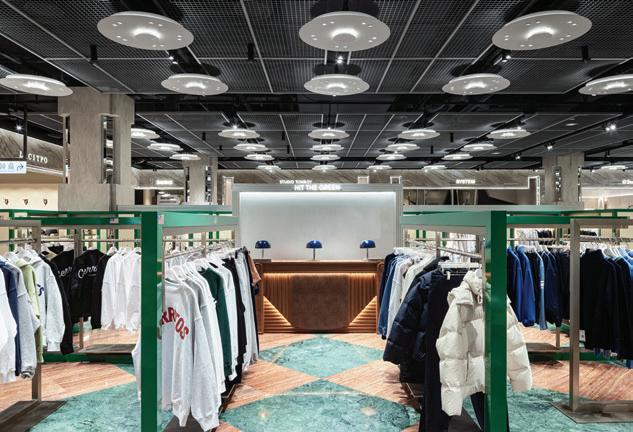 Iconic square is a space that connects the main building and mall to make a new experience space where customers can stay, in addition to its role as a PASSAGE. We created an impactful PASSAGE by reinterpreting the feeling of the lobby lounge of the past hotel and building. Big slab tiles with hued marble pattern were applied in different types depending on the side showing them, and a classic mood was created through the overall material and ceiling pattern. The marble pattern was extended to the circulation to make it feel like a new space, and the regular wall also created a boundary between the circulation and the store while blurring it, becoming a space where customers could freely enjoy. By giving the space a strong identity, we tried to suggest a space where any brand can look different with a mixed-match feeling.