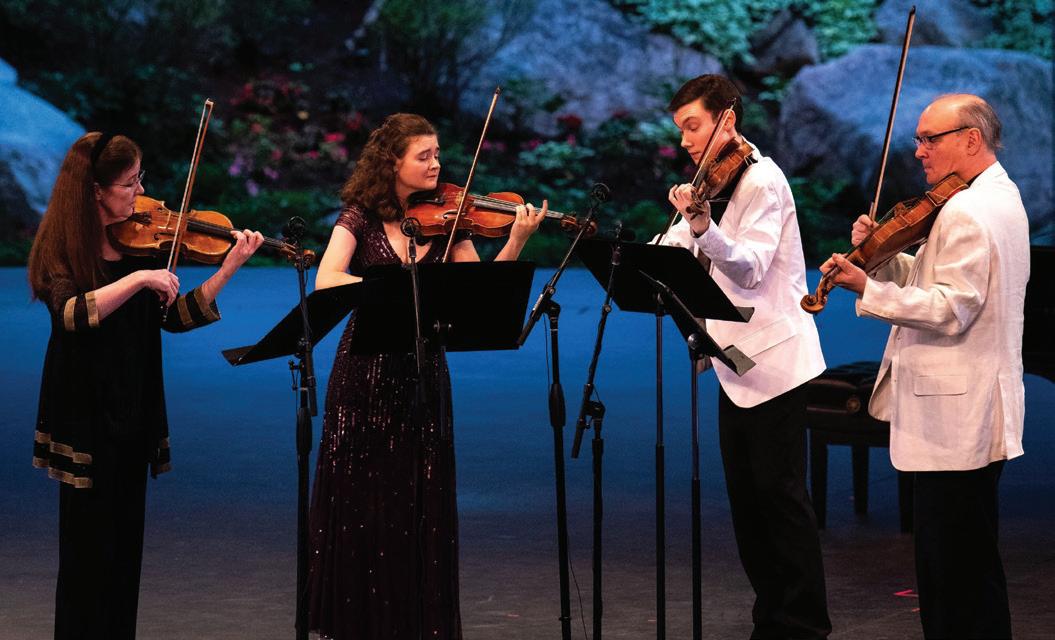 DOVER QUARTET, STRING QUARTET won every prize at the 2013 Banff Competition. Winner of the Avery Fisher Career Grant, it is Quartet-in-Residence for the Bienen School of Music at Northwestern University, Chamber Music Northwest, Artosphere, Amelia Island Chamber Music Festival, and New York’s Peoples’ Symphony. It was the first-ever Quartet-in-Residence for the Kennedy Center, and first Quartet-in-Residence at the Curtis Institute, where it was formed. Collaborators have included Anne-Marie McDermott, Emanuel Ax, Marc-André Hamelin, Jean-Yves Thibaudet, Peter Serkin, and Edgar Meyer. Dedicated to sharing its music with underserved communities, the Quartet is actively involved with Music for Food.