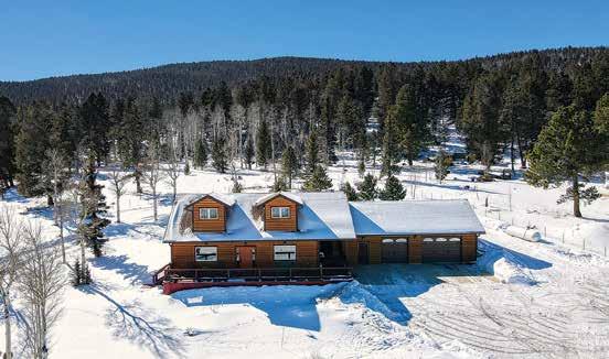 13405 County Road 261C, Nathrop. Nothing quite compares to sitting on your expansive wrap-around deck enjoying the sights and sounds of Browns Creek bubbling past you. This mountain home is nestled in trees — aspen, cottonwood, spruce, ponderosa pine — and features nearly 400 feet of creek frontage on Browns Creek. Loads of natural light baths this home which has a main floor primary bedroom & bath and a second bath for the two bedrooms on the second story. The second story features a loft which overlooks the kitchen, dining, and great rooms. This property has two outbuildings. Spacious 2 car garage, heated studio with windows facing south. The second outbuilding is an RV garage with extensive storage and an attached 408 square foot workshop.