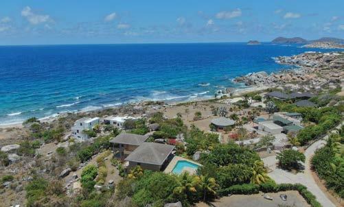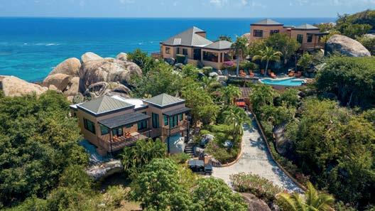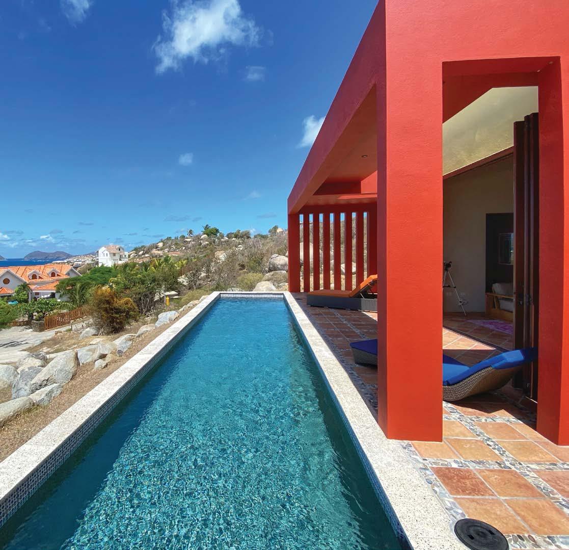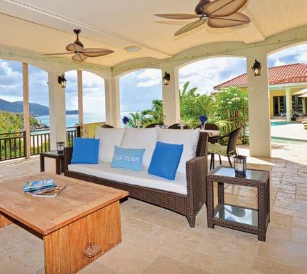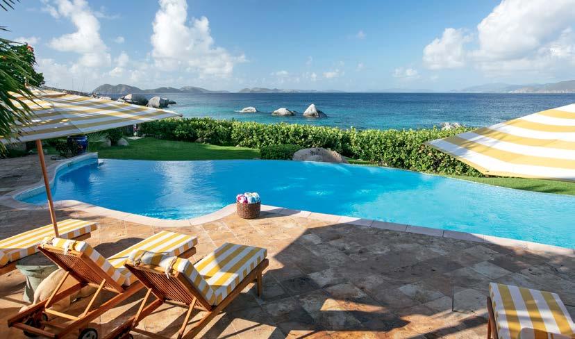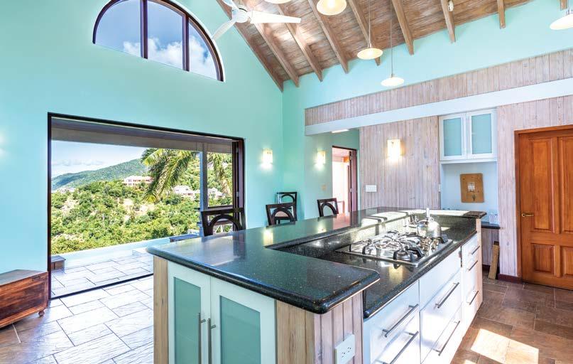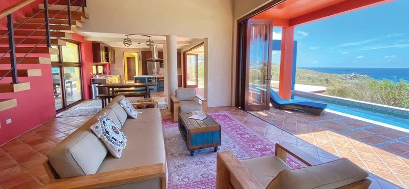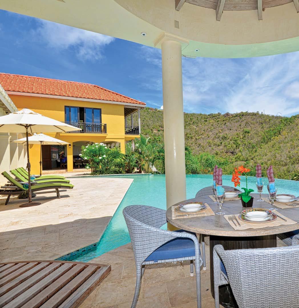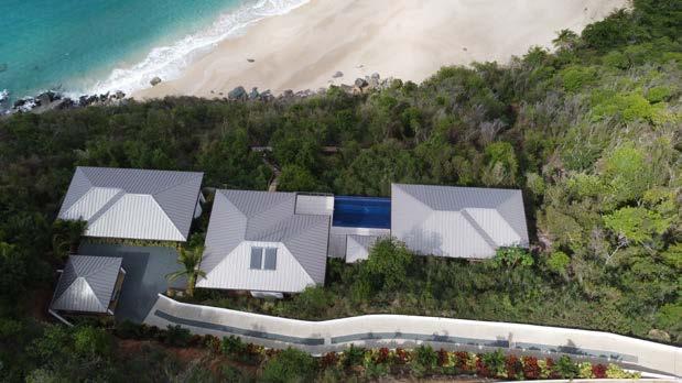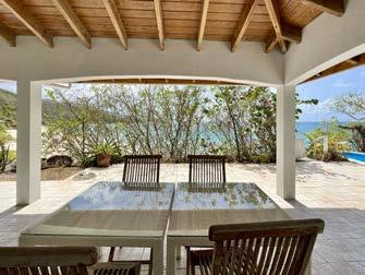 Tucked quietly away in Little Bay private estates, Seaside Escape provides just that - a sophisticated island escape like none other. With impressive architectural design and an exquisite attention to detail, as no expense was spared when creating this incredibly comfortable and structurally sound home. High-end finishes, distinguished craftsmanship and refined furnishings are gracefully combined in this customdesigned top-of-the-line home. No home on the island of Tortola closely compares for quality and finishes. As you enter the grand living and dining area, you’ll be greeted by 20foot cathedral ceilings with carefully crafted wood beam trusses and raised panel wainscoting. A huge expanse of hurricane-proof sliding glass doors makes the view of the 60-foot horizon edge pool and the spectacular vision of the sea and beach beyond the star of the show. These doors can slide all the way open to create an indoor-outdoor experience or be closed for those that