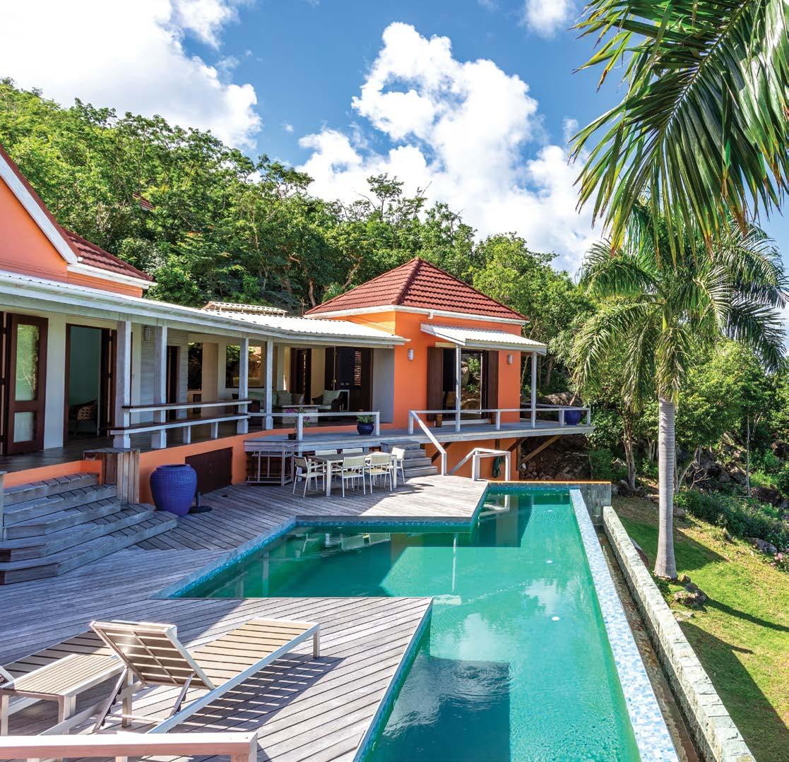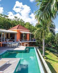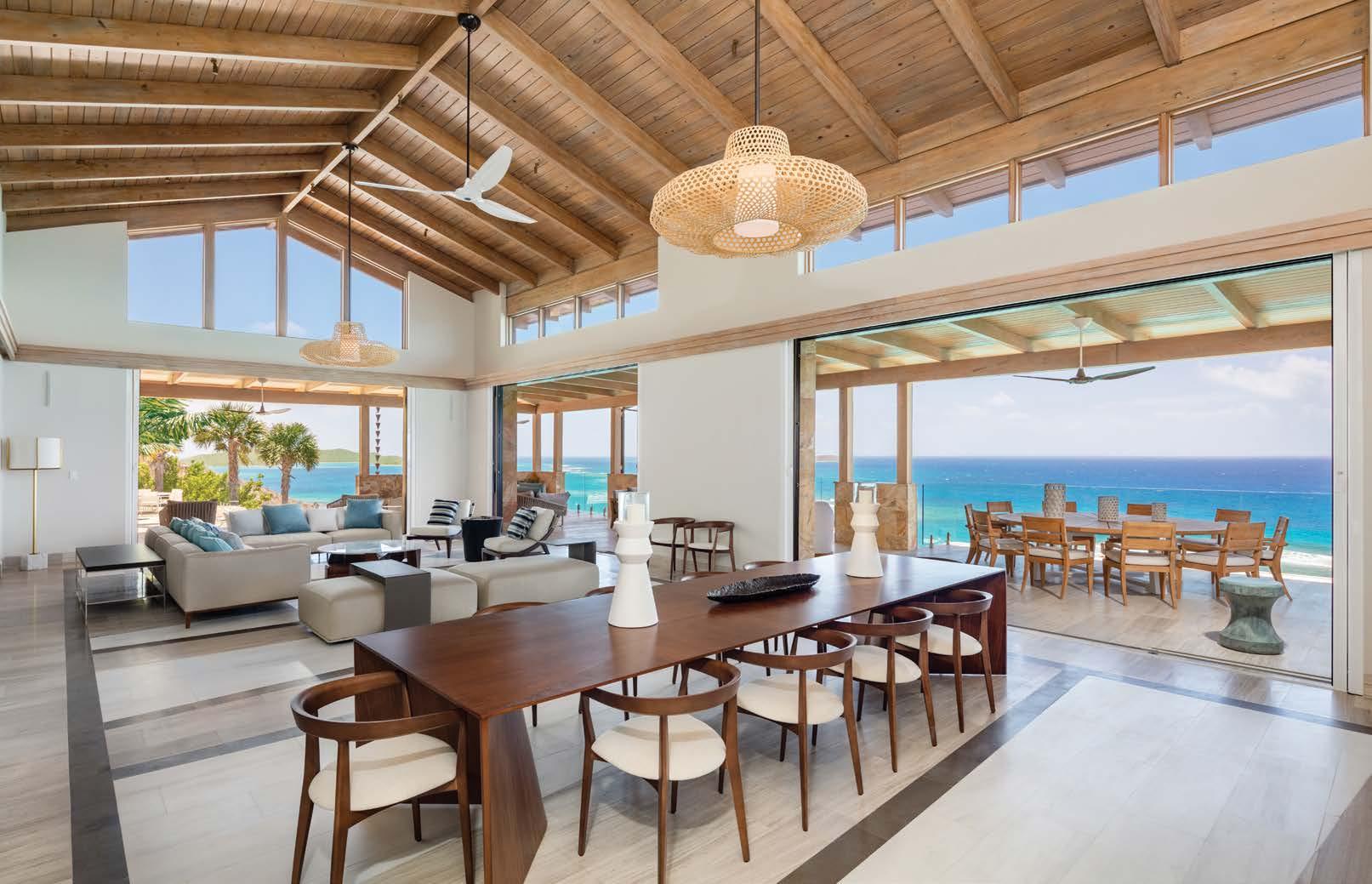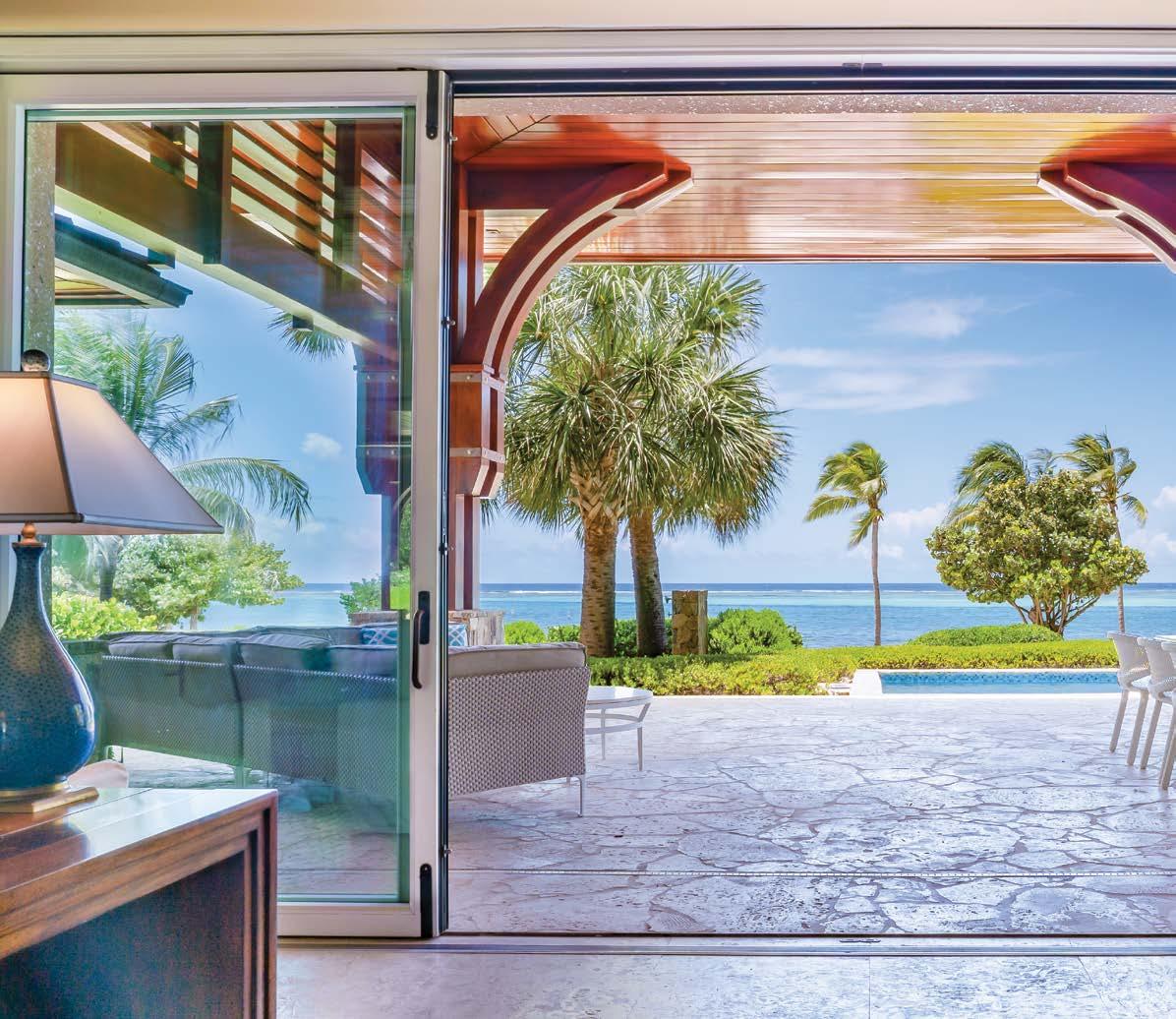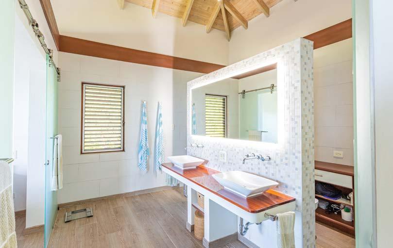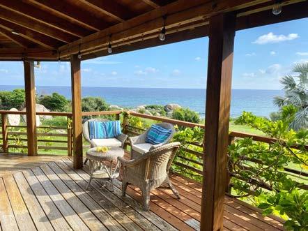 Tucked quietly away in Little Bay private estates, Seaside Escape provides just that - a sophisticated island escape like none other. With impressive architectural design and an exquisite attention to detail, as no expense was spared when creating this incredibly comfortable and structurally sound home. High-end finishes, distinguished craftsmanship and refined furnishings are gracefully combined in this customdesigned top-of-the-line home. No home on the island of Tortola closely compares for quality and finishes. As you enter the grand living and dining area, you’ll be greeted by 20foot cathedral ceilings with carefully crafted wood beam trusses and raised panel wainscoting. A huge expanse of hurricane-proof sliding glass doors makes the view of the 60-foot horizon edge pool and the spectacular vision of the sea and beach beyond the star of the show. These doors can slide all the way open to create an indoor-outdoor experience or be closed for those that