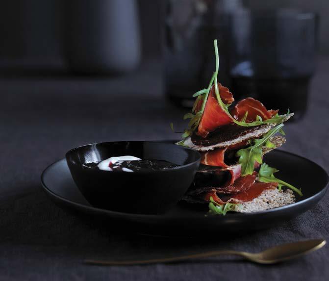 2. For the appetizers: assemble crisp breads with equal portions of venison and arugula. Serve immediately with chutney and sour cream on the side.