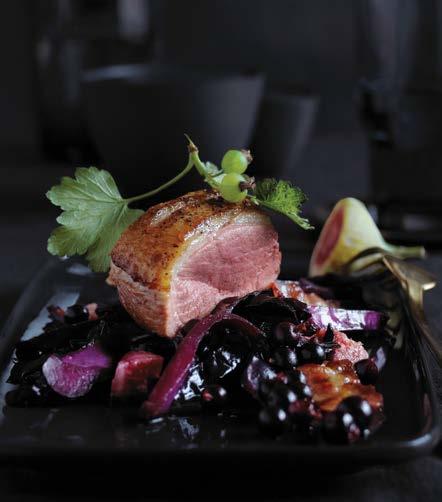 4. Cut each duck breast in half and serve on top of the red cabbage. Serve immediately with sauce.