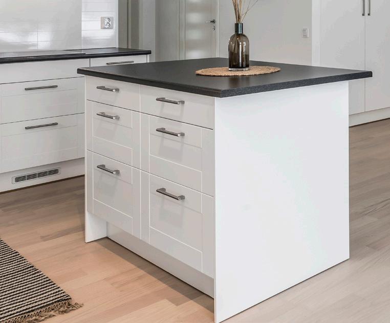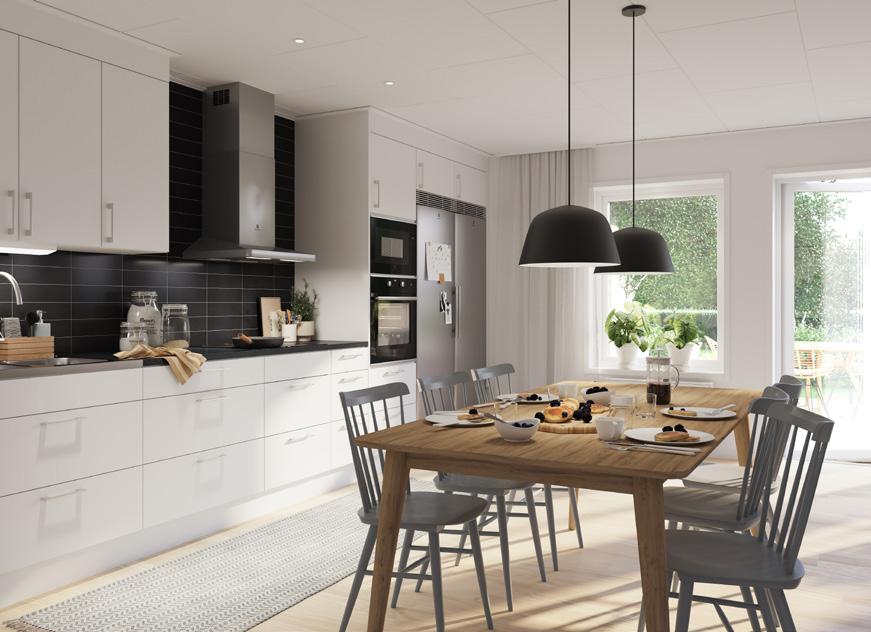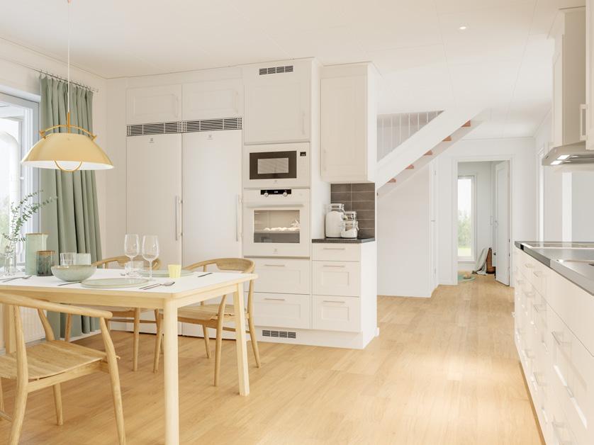 Innan hussektionerna till sist lämnar fabriken kompletteras de med vitvaror och delvis egentillverkad inredning för kök. Allt paketeras torrt och sätts under presenning innan det levereras till tomten där det ska monteras.