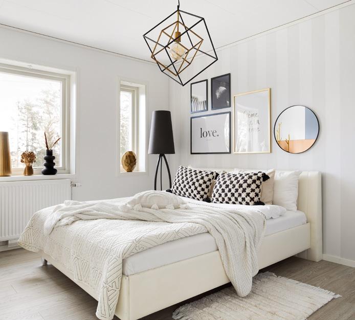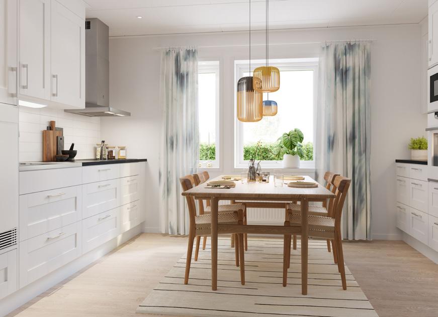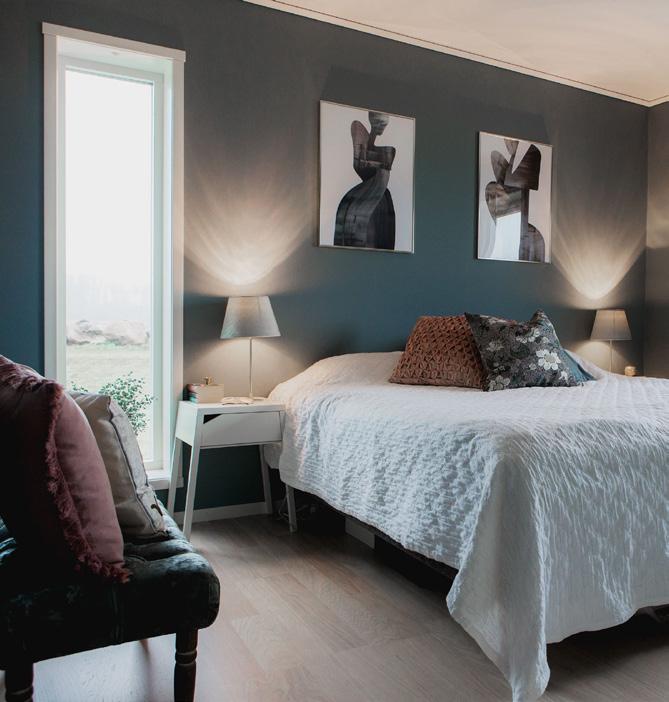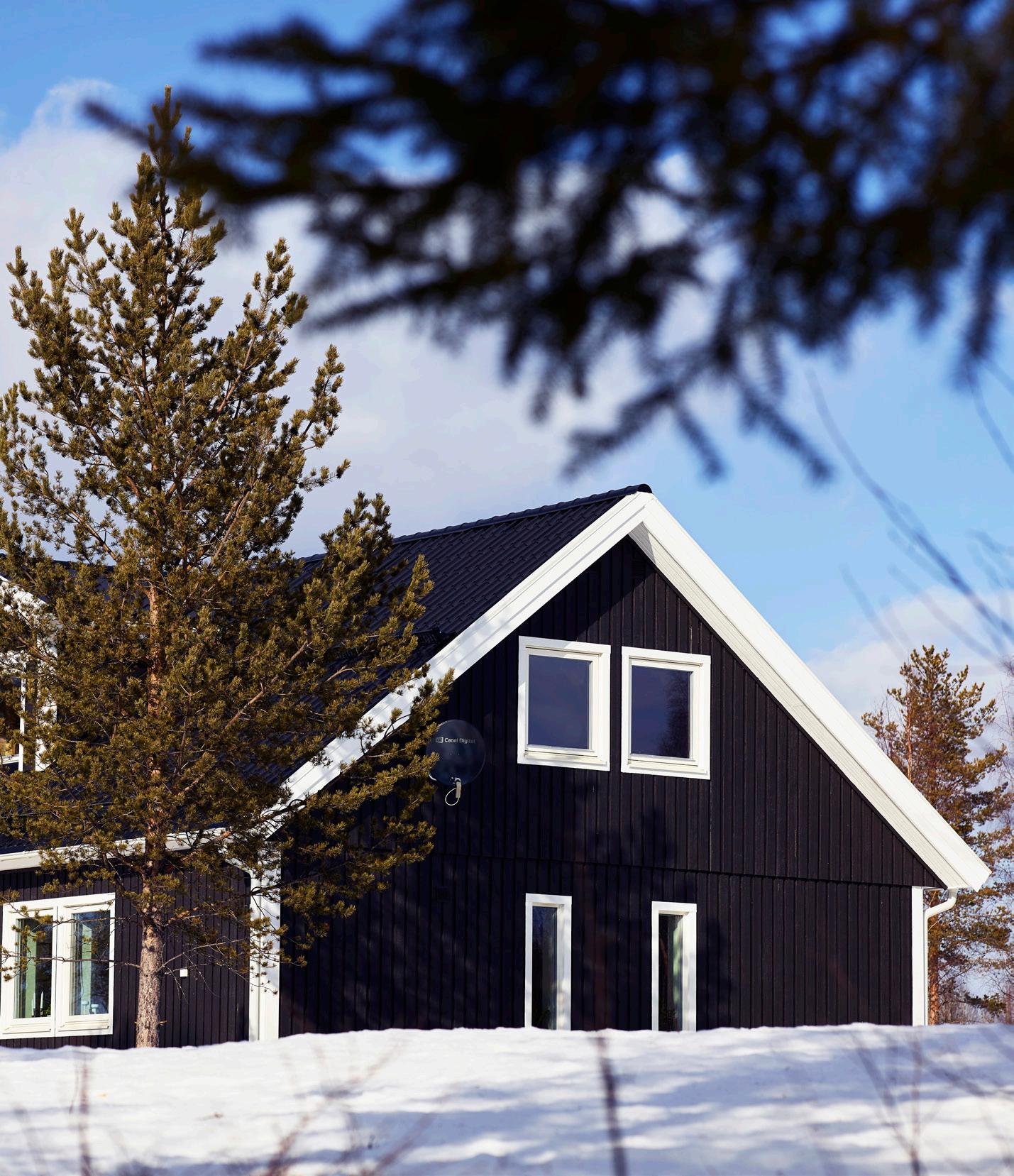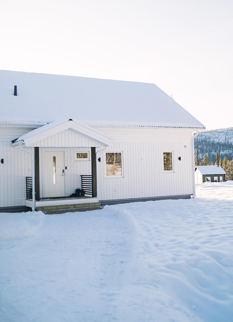 utrustat med så många fönster som möjligt men även förhöjt väggliv med 34 graders taklutning och takkupa. Bastu är något de planerar att bygga ute på gården lite längre fram och därför var det inte aktuellt med bastu inne i huset.
