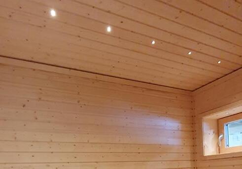 Dimbara spotlights går att välja som ett extra tillval till din bastu och skapar en mysig stämning, speciellt när mörkret börjar falla på.