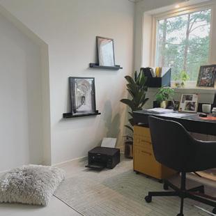 När de började kika på Älvsbyhus husmodeller stod valet mellan Villa Alvar och Villa Lasse men efter att ha funderat och diskuterat så vann till slut Lasse. Att tänka ett steg längre var egentligen det som avgjorde saken, att sönerna som idag är 14 och 16 år kanske inte blir hemmaboende så många år till och då är huset mer än nog för två personer. Med Villa Lasse får familjen ett lagom stort hus med integrerat kök och vardagsrum, badrum med förråd (här finns möjlighet till bastu) samt ett sovrum på entréplan. På ovanvåningen har sönerna varsitt sovrum samt egen toalett och utrymmet vid takkupan har familjen inrett som kontor.